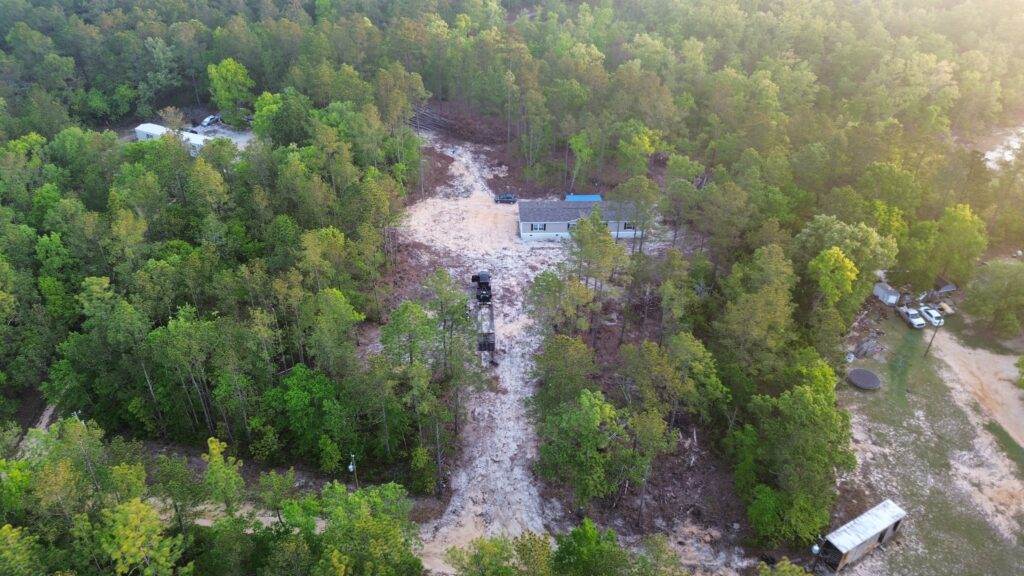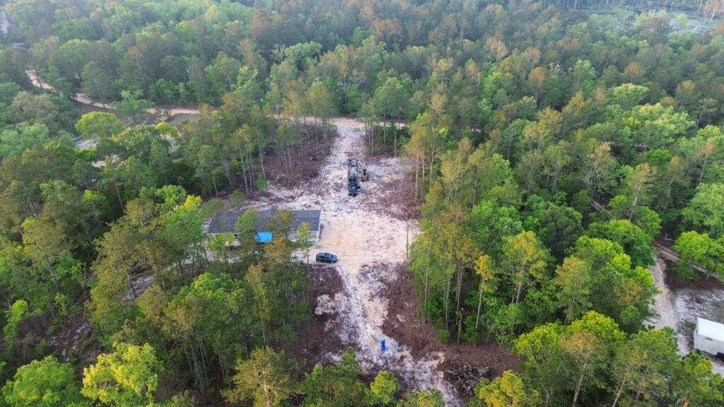 Selective forestry mulching to open up usable space while preserving hardwood trees for natural shade. Completed with our Cat 299 and Diamond Mowers for precise, efficient clearing.
